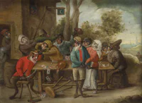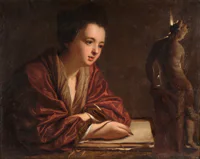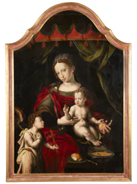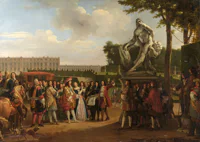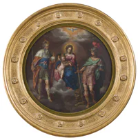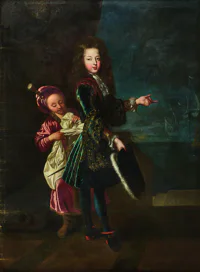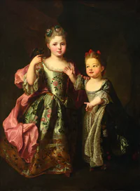 Portrait d'homme portant le ruban de Saint Michel, portrait de dame en robe grise et surmanteau rouge