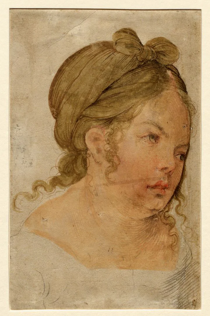 Chez Hans von Kulmbach, cette même physionomie féminine apparaît dans de nombreuses oeuvres, Vierges à l’Enfant, Saintes Catherine ou Marie-Madeleine, mais aussi des donatrices idéalisées et certaines figures d’anges. La pratique même de ces études est directement issue des méthodes mises en place par Dürer dans son atelier; le visage devient ainsi adaptable selon le costume ou l’expression recherchée, telle une banque de formes humaines réutilisables dans la production de retables.