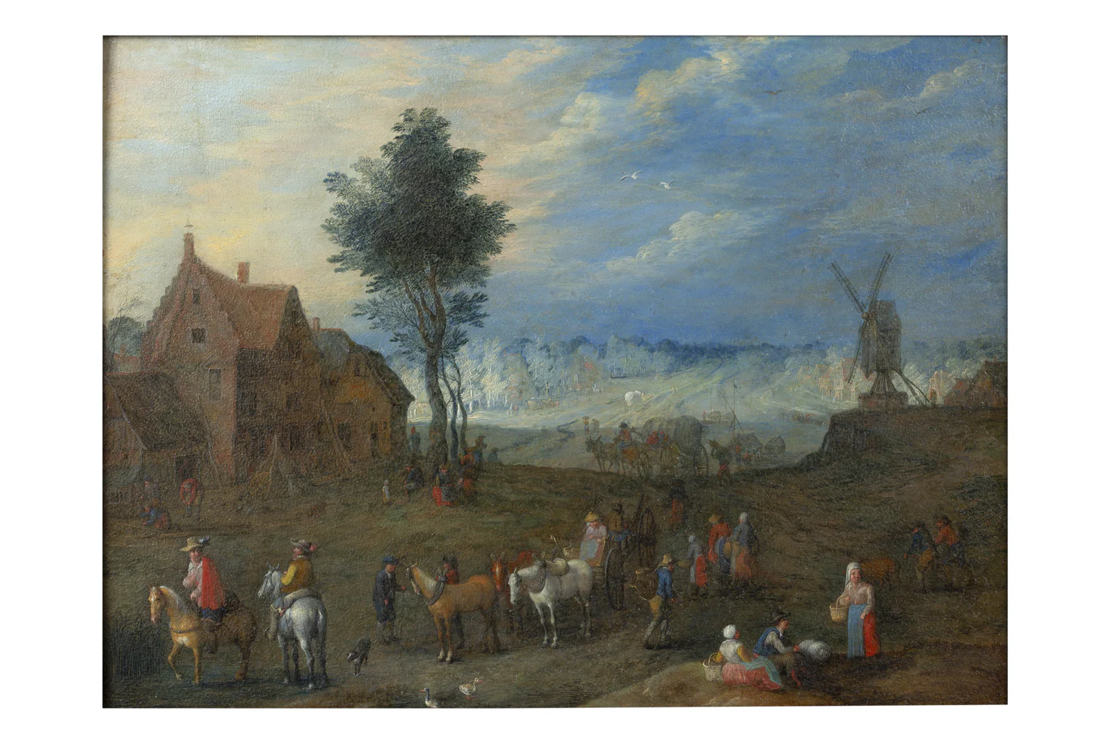 Œuvre réalisée sur cuivre, elle est un très bel exemple du travail sur ce support de l’artiste. La surface particulièrement lisse du métal permet à Van Bredael de renouer avec cette précision miniaturiste que l’on retrouve chez Brueghel l’Ancien. De petit format mais dotés d’une ampleur panoramique, ces paysages étaient conçus pour être observés de près : on pouvait les décrocher du mur, les tenir en main et se laisser captiver par la richesse de leurs détails.
