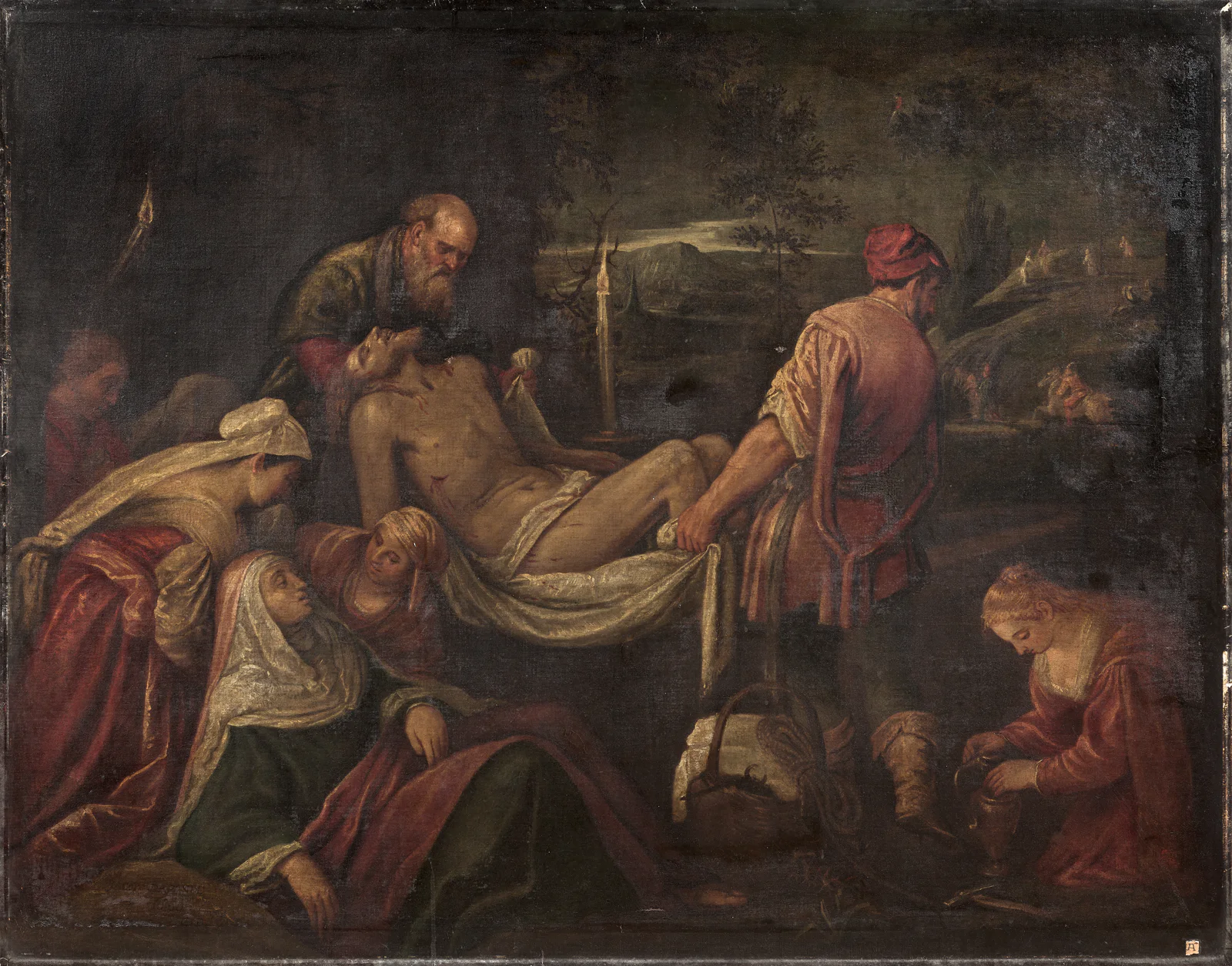 Reprise avec des variantes de la composition de Jacopo Bassano conservée à Santa Maria in Vanzo à Padoue et de celle attribué à Giambattista da Ponte et conservée à Bergame, chiesa dell'Ospedale (voir E. Arslan, I Bassano, Milan, 1960, figs. 167 et 267).