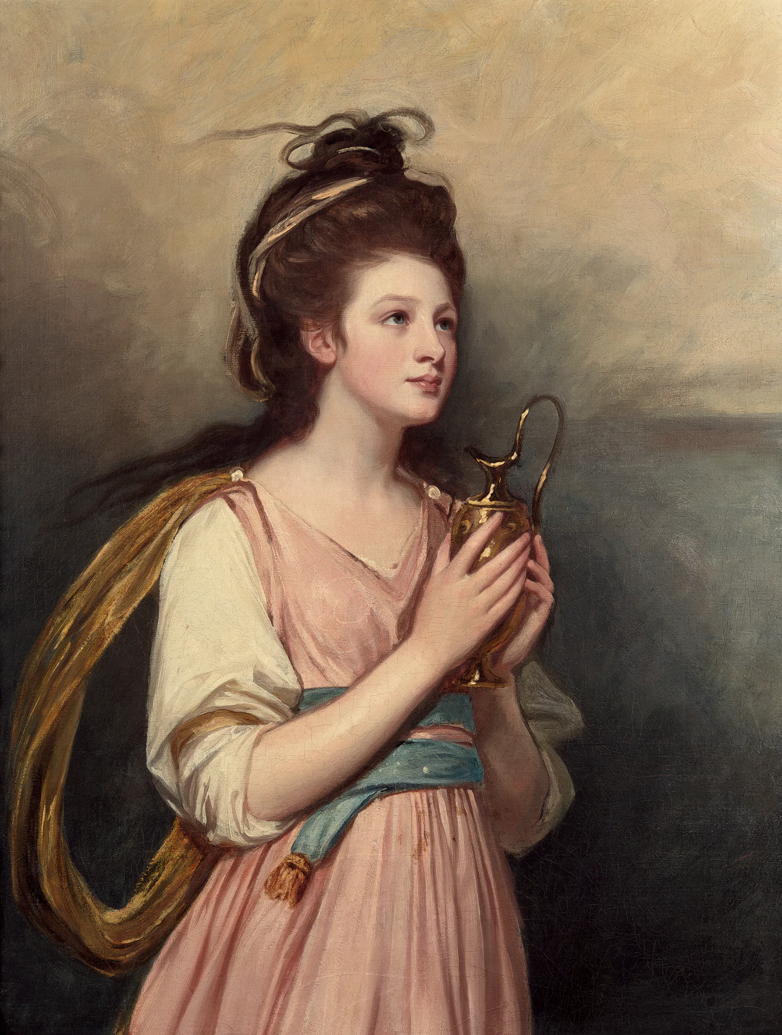George Romney est, avec Joshua Reynolds et Thomas Gainsborough, l’un des portraitistes les plus importants de la seconde moitié du XVIIIe siècle. A la différence de ces deux derniers, il n’entre pas à la Royal Academy, et ne bénéficie pas du patronage de l’aristocratie au tout début de sa carrière. Ce qui ne l’empêche pas de peindre de nombreuses figures de la haute société londonienne. Né dans le nord de l’Angleterre, il se forme auprès de son père, ébéniste, puis avec le peintre Christopher Steele, à Redmayne’s Yard. Il s'installe à Londres en 1763. Il complète ensuite sa formation à Paris en 1764, puis en Italie entre 1772 et 1775. De retour à Londres, il rencontre en 1782 la future lady Hamilton qui devient sa muse qu'il peint une cinquantaine de fois, au naturel ou travestie en divinité ou du théâtre. A côté de ses portraits, Romney laisse une importante oeuvre graphique proche de Füslli et Flaxman (musée du Louvre).
